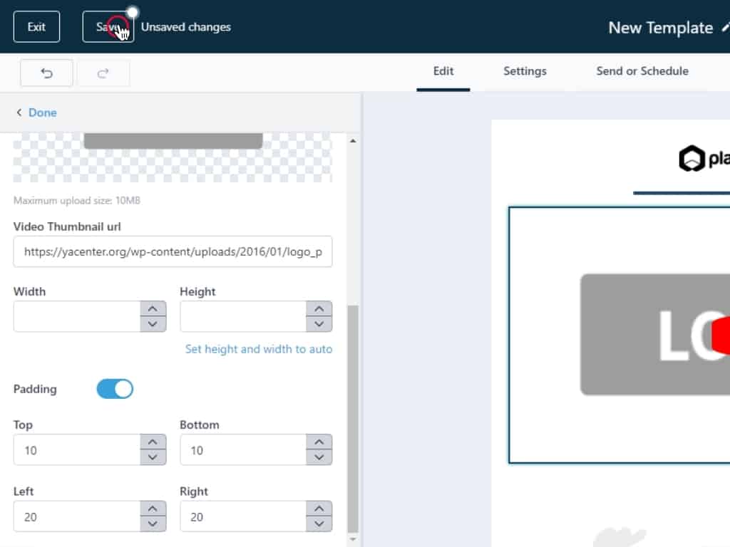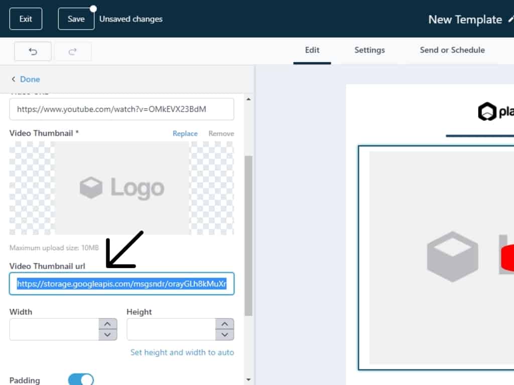The edit menu also has options to customize the size of the thumbnail as well as a padding option to add borders over the video thumbnail.