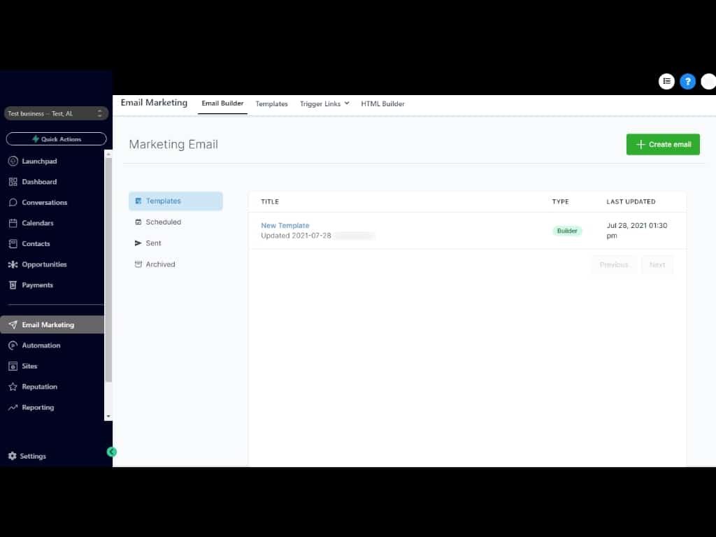 To start, click Email Marketing on your left menu and select the Email Builder tab at the top.