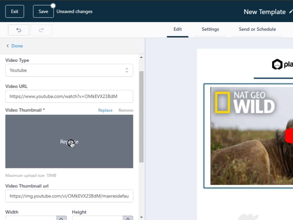 To add a video element, all you have to do is drag and drop the video icon on the template.