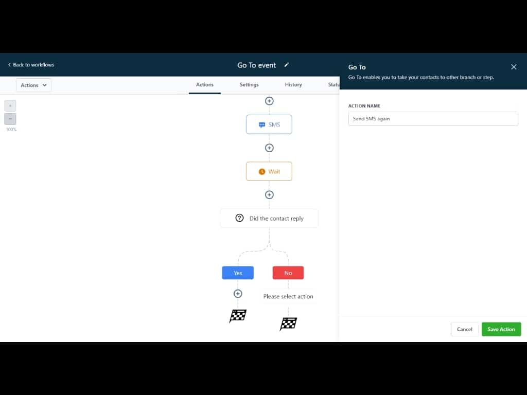 Lastly, select the step where the contact should go to when they hit this action. In our example, the contact will go back to the SMS step again.